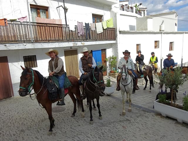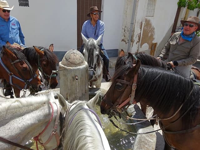 From the very start, we feel the deep equestrian spirit that runs through these lands: ancient bridle paths, whitewashed cortijos nestled among olive groves, and conversations with local horsemen who proudly speak of their horses’ lineage. In every village we pass, we are welcomed as part of an old custom — travelers on horseback, as it was done centuries ago.