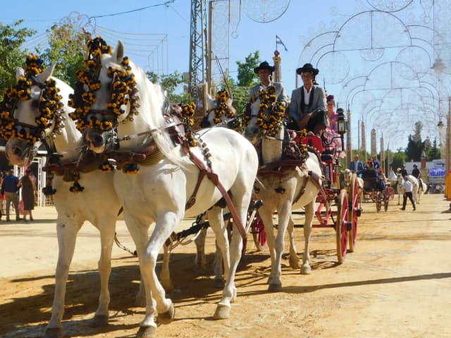 Items included for the day: Breakfast – Private transfer to Yeguada la Cartuja - Visit to the stud farm - Private transfer to the fairgrounds - Visit to the Feria del Caballo - Equestrian events - Carriage displays - Visits to the casetas (stands) - Transfer back to the hotel.